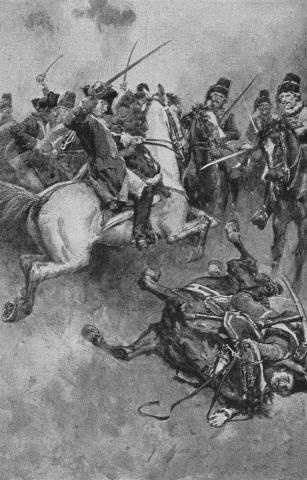 The Austrian cavalry had formed up in two troops, one twenty yards behind the other, and each in line two deep, extending across the road by which Fergus was riding. Seeing, by the speed at which he was travelling, that the Prussian staff officer had no intention of surrendering, the Austrian in command gave the order to charge, when they were some fifty yards away.