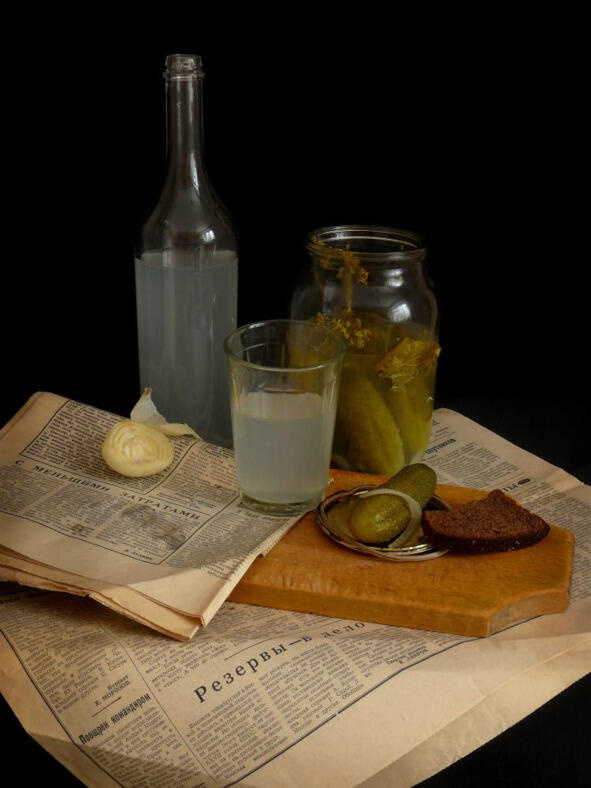Колька опять хохотнул, выловил из трехлитровой банки соленый огурец и начал нарезать его не очень ровными дольками. В пять минут стол был накрыт.