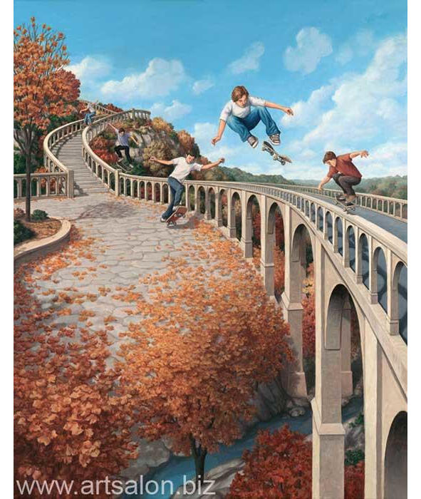 Стой. Если немного сбавить панику, то можно заметить, что весь народ занят своими делами и до меня им нет дела. Им все равно существую я или нет и тем более не важно во что я одета. Наверное блузка это цель моего разума, моих личных желаний. Но эта цель для меня важна и я должна найти её. Выхожу из комнаты, выбегаю на улицу. Чудесная, солнечная погода, а главное никого нет отлично. Бегу к огромному мосту. Весь город состоит из одного извилистого моста, который ведёт неизвестно куда. Но я уверена, что нужно направиться именно по этому пути, чтобы отыскать несчастную блузку.