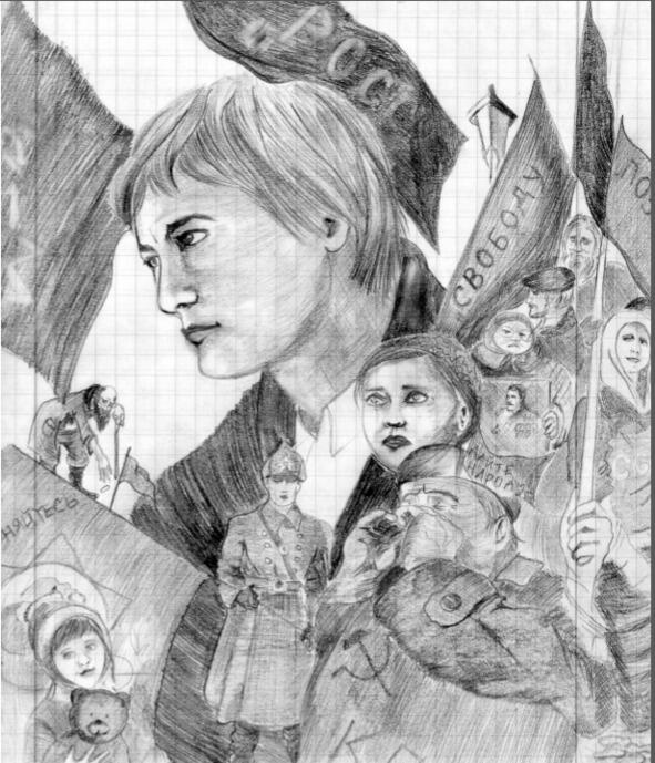 Она вдруг сорвала с головы революционера шляпу и примерила на себя. Ей хотелось посмотреться в зеркальце, но оно выскользнуло из рук и разбилось. И тогда она присела у лужи и посмотрела на свое отражение.
