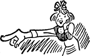 Was ist denn das für ein Radau? Sie steht auf und schreitet, mit strafenden Blicken, in den tollen Jubel hinein. Als sie aber die zwei Zopfmädchen entdeckt, schmilzt ihr Zorn wie Schnee in der Sonne dahin. Belustigt fragt sie: