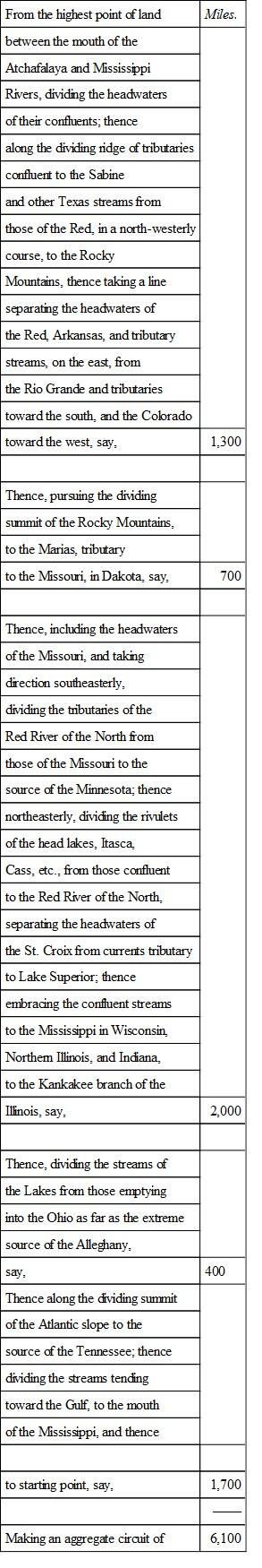 It is not possible to give, with complete exactness, the outlines of the immense valley drained by the Mississippi, yet, with the assistance of accurate surveys, we can make an approximation, to say the least, which will convey some idea of the physical necessity of the river to the vast area through the centre of which it takes its course.