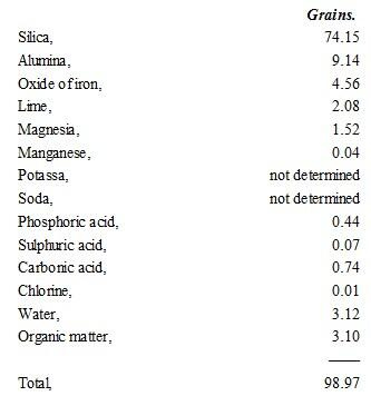 Professor Riddell also comes to the following conclusions, after an analytic investigation of the sediment. He took one hundred grains from the river margin, dried it at 212° Fahrenheit, before weighing, and found it to contain: