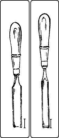 Fig. 75. Right and Wrong Ways of Perpendicular Chiseling.