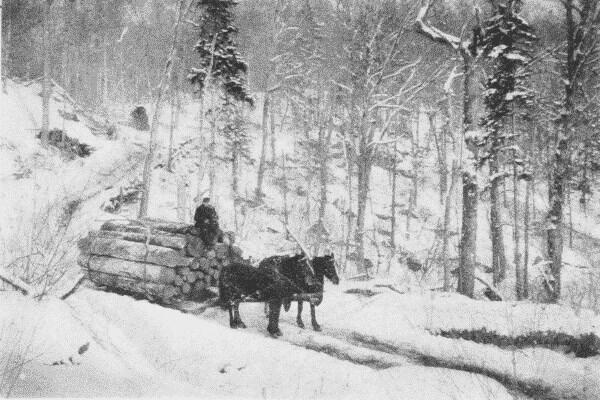 Fig. 8. Hauling Spruce Logs to the Skidway.