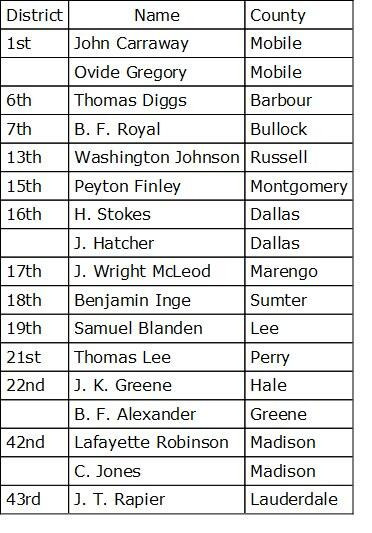 Negro Members of the Alabama Constitutional Convention, 18671594 Beverly, History of Alabama, pp. 202-208.
