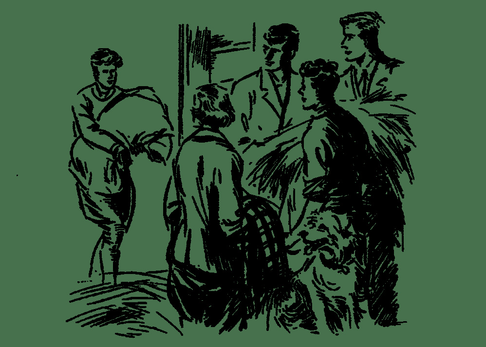 Джордж и Энн пошли проводить мальчиков на конюшню. Девочки уже надели пижамы и халаты и по дороге то и дело зевали.