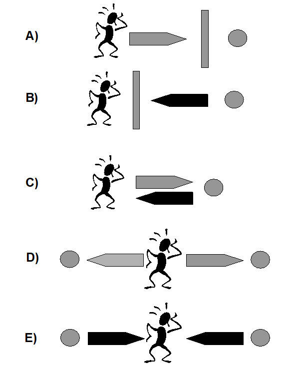 Scheme five [Fig. 2e] corresponds to the situation when there is no choice, when all variants are bad. For example, life situation is unbearable, so unbearable that you want to escape from it, but if you do it the situation will be still worse. This corresponds to Joe Bidens model of double clamp [26]: