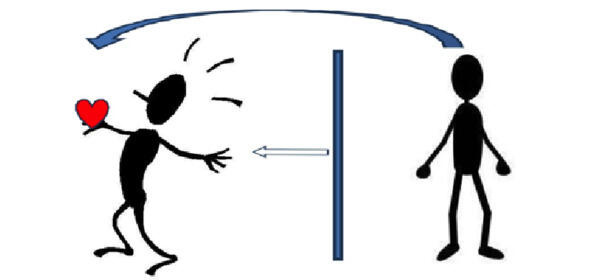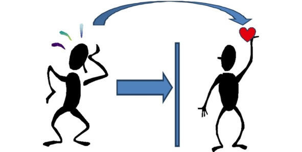On Figure 3 [a, b] we analyze psychological problem of type one and its possible solution in greater detail. Besides the aim, the desire and the barrier it shows a phantom paw [an arrow above the barrier] by which a person is holding his aim or his barrier. A small heart shows the feelings that the person has for the desirable object. It is this phantom paw that a person cannot or does not want to unclench to let go the aim or the barrier determines his dependence and chronic negative emotions he feels. It determines further painful forms of adaptation to this unnatural situation. And he cant unclench the phantom paw because he put into the object some very important feelings, hopes or even a part of his own personality. When the small heart returns the attraction disappears, which is symbolized be a light arrow directed from the former aim and barrier [pic. 3b]. To resolve other problems different techniques may be used, picture 3 is given as an example.