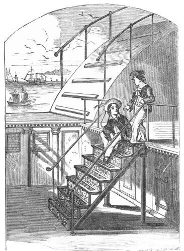 "Then let us go out on the forecastle," said Waldron. He pointed, as he spoke, to the forecastle, which is a small raised deck at the bows of a steamer, where there is an excellent place to see.