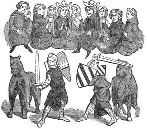 It could not be expected that such powerful and warlike chieftains as these could be kept much under the control of law by the ordinary machinery of courts of justice. There were, of course, laws and courts of justice in those days, but they were administered chiefly upon the common people, for the repression of common crimes. The nobles, in their quarrels and contentions with each other, were accustomed to settle the questions that arose in other ways. Sometimes they did this by marshaling their troops and fighting each other in regular campaigns, during which they laid siege to castles, and ravaged villages and fields, as in times of public war. Sometimes, when the power of the king was sufficient to prevent such outbreaks as these, the parties to the quarrel were summoned to settle the dispute by single combat in the presence of the king and his court, as well as of a vast multitude of assembled spectators. These single combats were the origin of the modern custom of dueling.