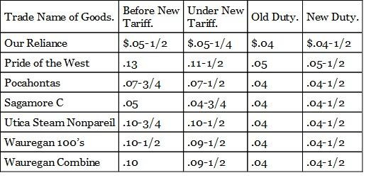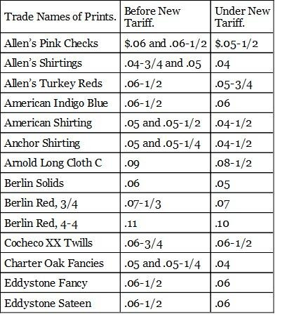 I will give first a table showing comparative prices before and after the tariff of 1890 of some of the cotton fabrics most commonly used. They are all protected industries and ought to have been advanced in price if any part of the assertions made by the advocates of free trade during the last campaign were true.