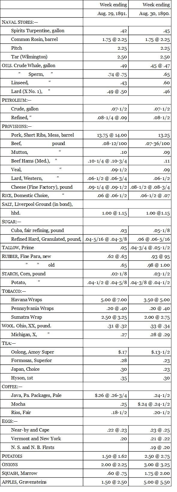 PRICES OF PRINT GOODS SIX MONTHS BEFORE THE MCKINLEY TARIFF PASSED COMPARED WITH THEIR PRESENT PRICESI give now a table comparing the market quotations for 1890 of the articles which enter most largely into the cost of living, with those for the same period in 1891: