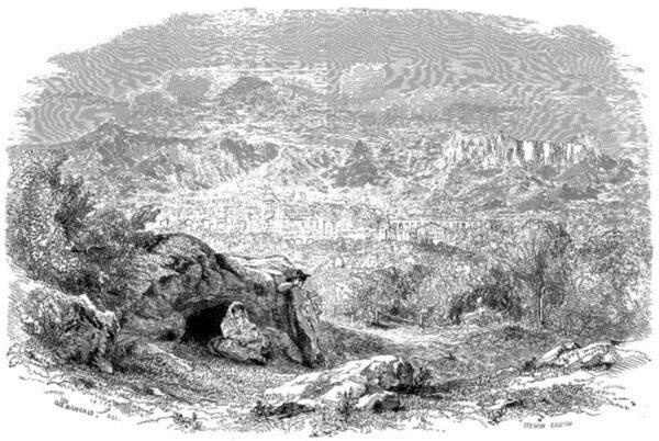 Die et la vallée de la Roumeyer, vue prise des hauteurs de Saint-Justin.Dessin de Français d'après M. A. Muston.
