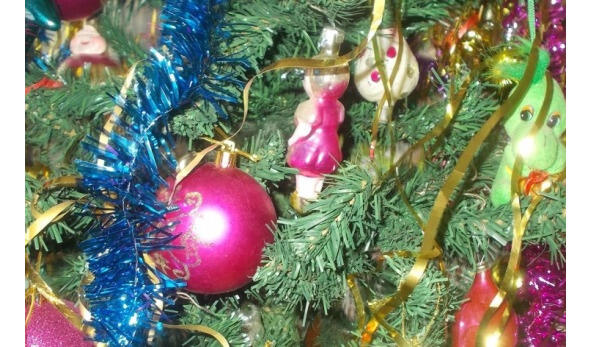 По дому были развешаны какие-то украшения, мне особенно понравился золотой дождь, он так красиво переливался, когда зажигали свет, и раскачивался даже от моего дыхания, потому что был очень лёгким.