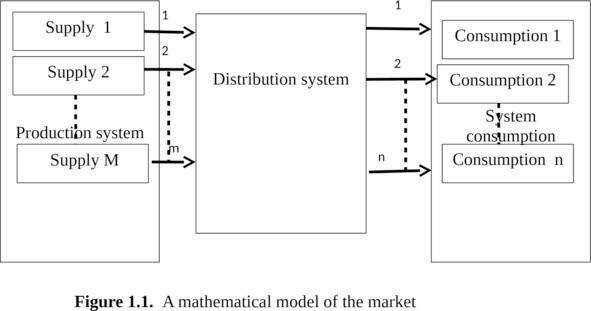 For the mathematical evaluation of processes in the economy it is necessary to create a model that would reflect them in mathematical form. In conjunction with the definition of units of measure of supply and demand relative consumption, this model allows to obtain and to provide a quantitative calculation, analysis and assessment of possible market behavior. The proposed model is shown in Fig.1.1.