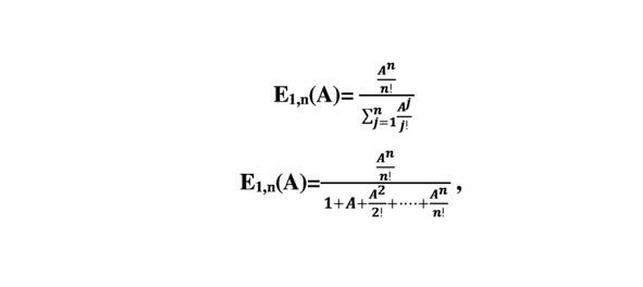 E1,n (A) value of loss for the consumer system of n groups (the number one indicates that this is the first Erlang formula, then will the area of application of the second formula Erlang).