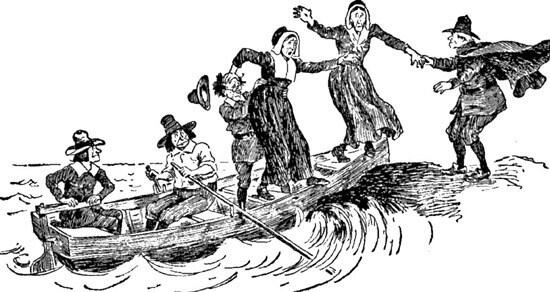 Salem and Charlestown were started by Governor Endicott, and Boston was founded in 1630. To these various towns the Puritans flocked, and even now one may be seen in ghostly garments on Thanksgiving Eve flitting here and there turning off the gas in the parlor while the family are at tea, in order to cut down expenses.