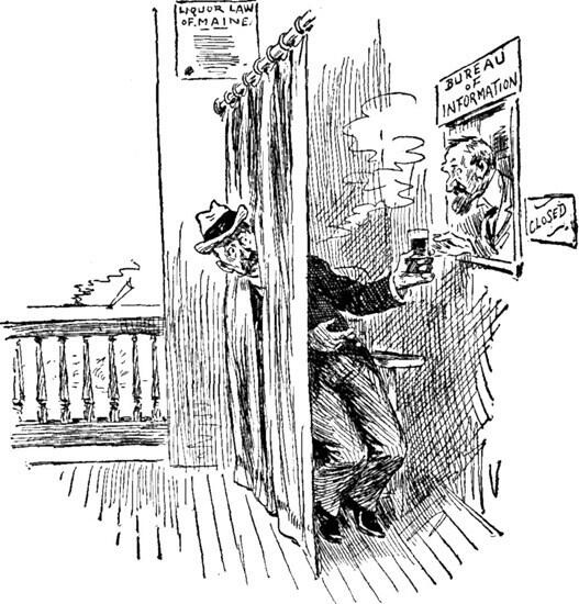 In 1820 Maine was separated from Massachusetts. Maine is noted for being the easternmost State in the Union, and has been utilized by a number of eminent men as a birthplace. White-birch spools for thread, Christmas-trees, and tamarack and spruce-gum are found in great abundance. It is the home of an industrious and peace-loving people. Bar Harbor is a cool place to go to in summer-time and violate the liquor law of the State.