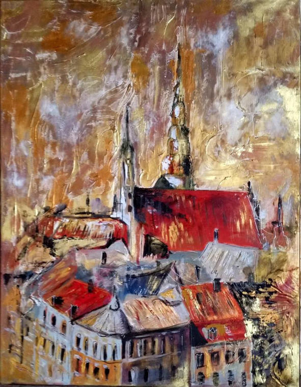 Солнце в Старой Риге (масло, холст, 60x66, 2013)