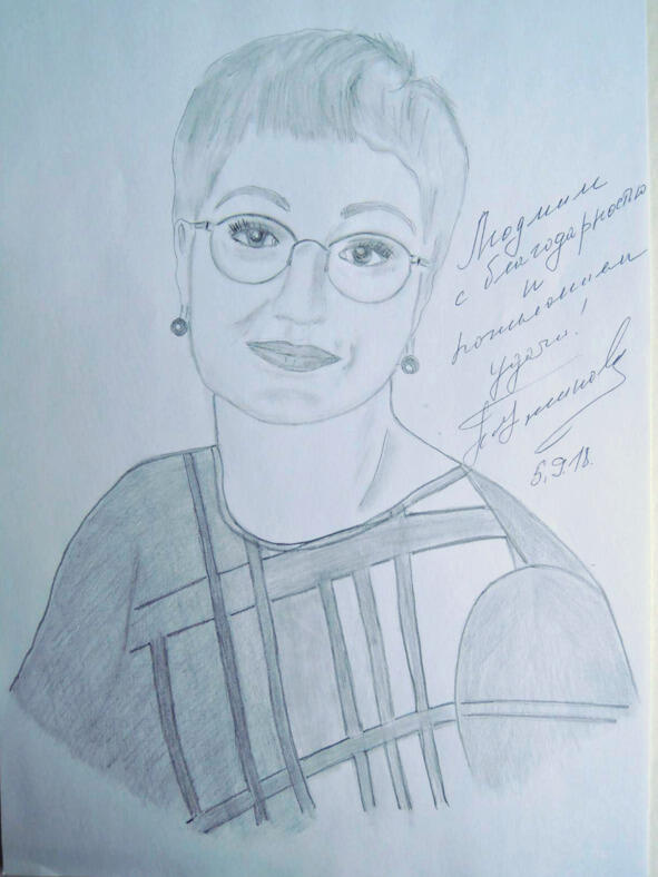 Когда я стала писать лирические детективы и рассказы, то попробовала изобразить на бумаге известных писателей, с которыми виделась на творческих встречах. Думаю, раз они оставили свои автографы на моих работах, значит, себя узнали. Обычно я люблю говорить: «Нарисовать портрет непросто, но ещё сложнее его сфотографировать». Те, кто хоть однажды пытался сделать фото рисунка, выполненного простым карандашом, меня поймут и, согласившись, даже поаплодируют моим словам.