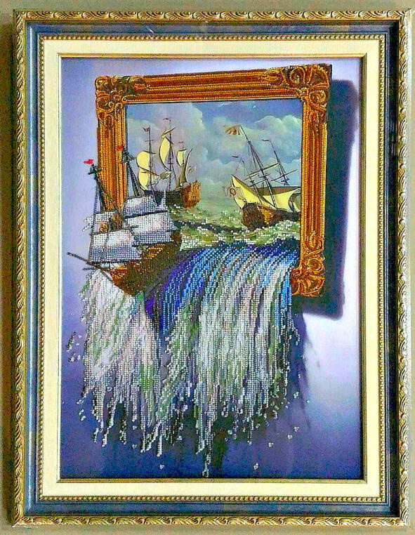 Как-то просматривая ленту новостей одной из соцсетей в интернете, я увидела очень необычную картину. Корабль буквально выплывал из рамки с морским пейзажем. Мой мозг никак не мог справиться с увиденным. «Что это?» спросила я себя и стала внимательно рассматривать этот шедевр.