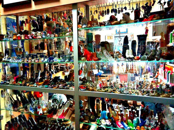 Витрина с маленькой сувенирной обувью.