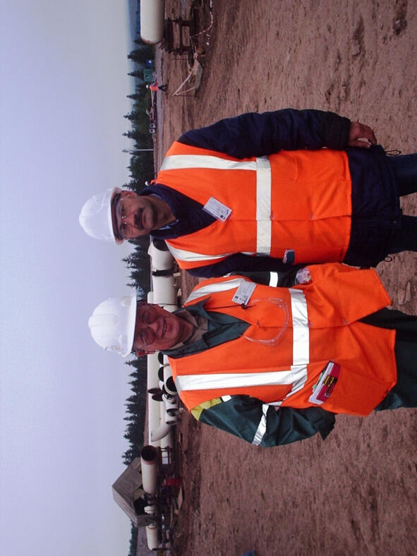 De-Kastri Oil Terminal is an oil export terminal located 6 km (3.7 mi) away from the village of De-Kastri in Khabarovsk Krai, Russian Federation. The terminal which started operations in 2006 belongs to the» Sakhalin-I» con-sortium led by Exxon Neftegas Ltdwhich also includes 20% stake held by Russian affiliates of Rosneft: Sakhalinmorneftegas-Shelf and RN-Astra. On the left is the Chief Welder of CJSC «DEM -Region» Brekhov A.I. Right: Chief Mech-anic of «DEM Region» CJSC S. Kochurov/06/06/2005 yars. (photo-Voroncov V.P)