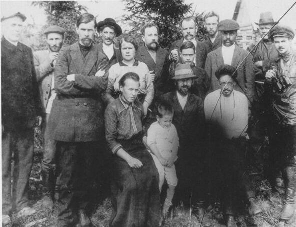 Группа ссыльных большевиков в Туруханске. Среди них Иосиф Сталин (на заднем плане в шляпе), Лев Каменев и Яков Свердлов (на переднем плане первый и второй справа).