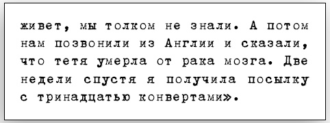 «В мае умерла моя тетя Пэг. По крайней мере, мы услышали об этом в мае. Тетя уехала из Соединенных Штатов два года назад, и, где она живет, мы толком не знали. А потом нам позвонили из Англии и сказали, что тетя умерла от рака мозга. Две недели спустя я получила посылку с тринадцатью конвертами».