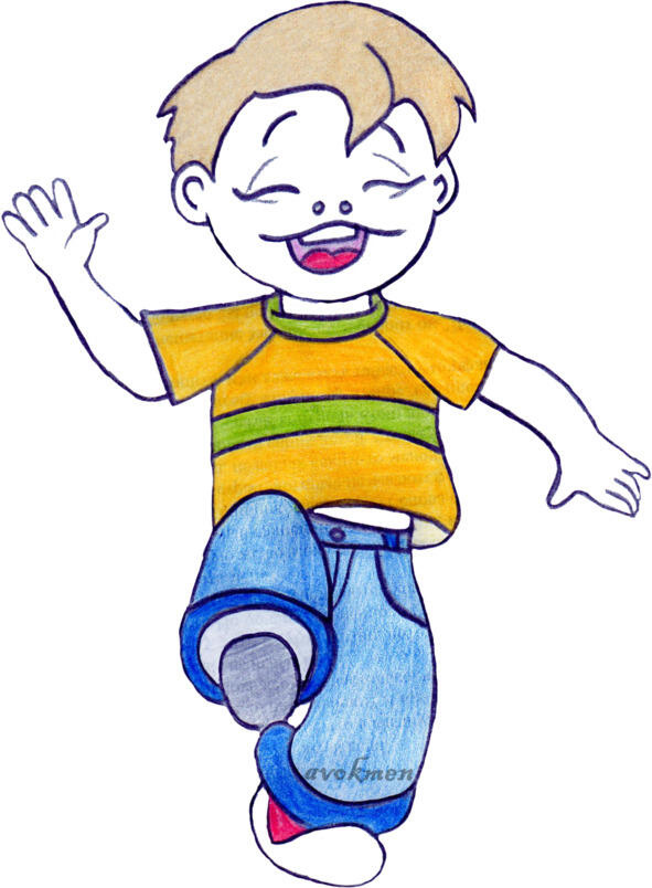Timoshka jumps from Alyoshas hands and runs to his friends.
