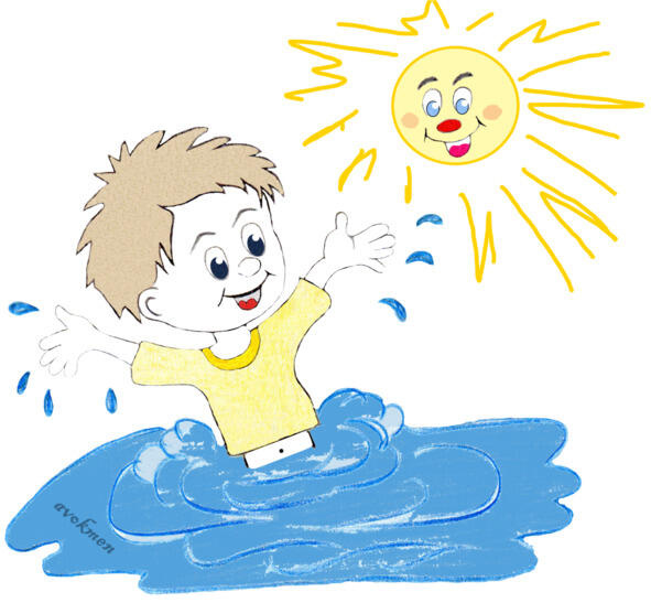 Alyosha and Bertha are already in the water. They are swimming and playing.