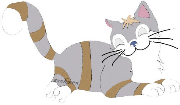 I have got many cats here, and Alyosha takes out several different cats. The cats are white, black, grey and red.