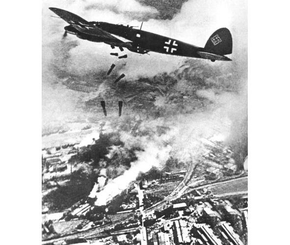 Задремав, проснулся от грохота взрывов и гула моторов. Подошел к окну и увидел в предрассветном небе самолеты. Рядом с ними вспыхивали белые облачка разрывов зенитных снарядов. Позвонил другу начальнику пассажирского отделения станции Киев Леониду Василевскому: