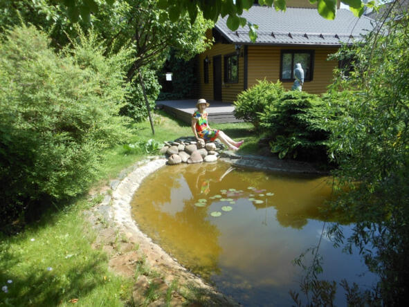 На даче Профессора была красивая обстановка хороший ландшафтный дизайн.