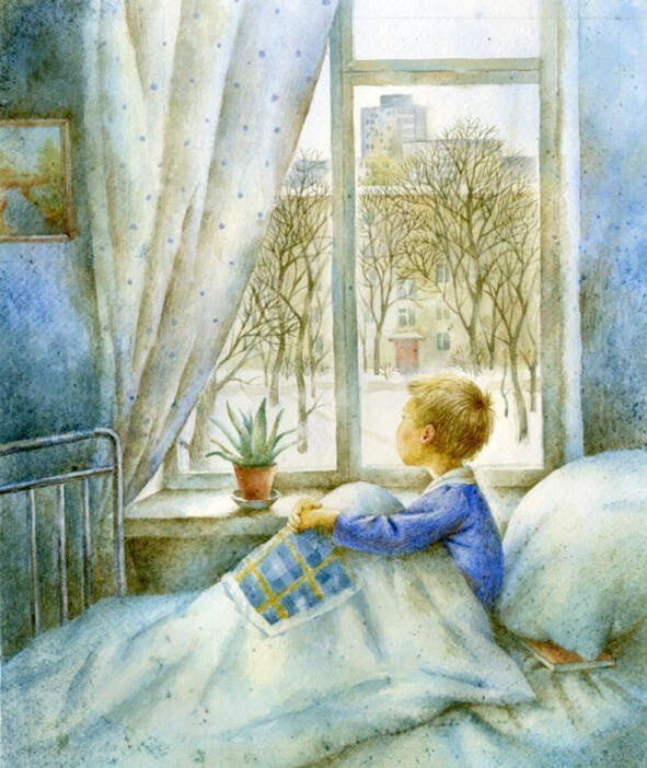 Так продолжалось уже несколько дней. Каждую ночь звёзды с неба мигали ему. Однако заветная Звёздочка не появлялась. Вова совсем было отчаялся, отвернулся, лёг лицом к стенке, но вдруг услышал слова знакомой песенки:
