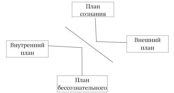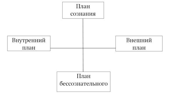 С другой стороны, не меньше примеров и прямо противоположного характера, когда именно иррациональное, алогичное, спонтанное оказывается наиболее значимым и ценным, когда именно бессознательное (глубинно внутреннее) возводится на пьедестал и объявляется главным источником художественного. Все эти примеры хорошо известны, и здесь мы их рассматривать не будем. Мы просто воспользуемся вышеприведенной схемой, чтобы эту тенденцию проиллюстрировать: