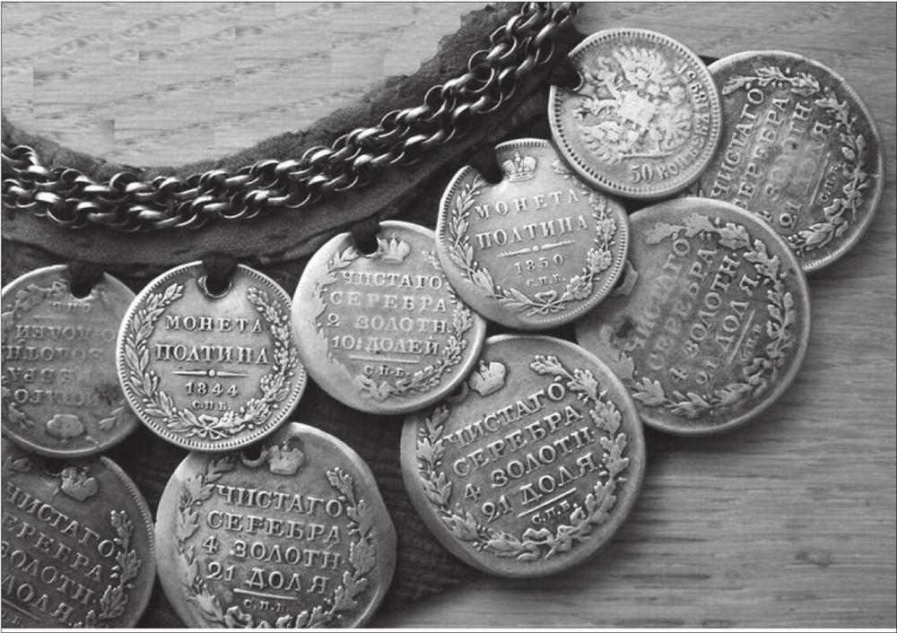 Намисто зі срібних монет Російської імперії і мідно-нікелевих монет СРСР.