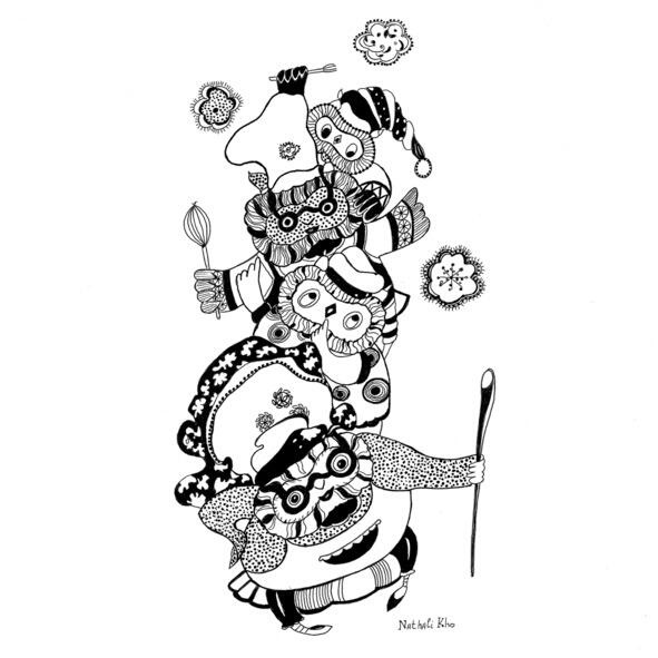 Вот и сейчас сова готовилась испечь рождественские кексы. Она перечитывала заметки, которые оставила на полях семейных кулинарных книг ещё её бабушка, мадам Ла Барб а Папа, большая мастерица по изготовлению сладкой белоснежной ваты. На кухне мадам Куглофф обычно помогали её три сына Круасан, Бриош и Бешамель.