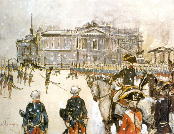 Александр Николаевич Бенуа. «Парад при Павле I». 1907