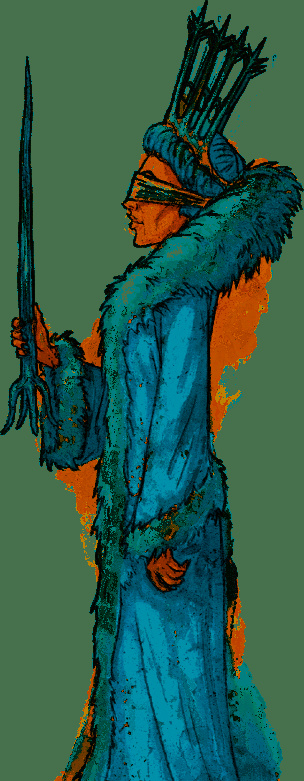 СНЕЖНАЯ КОРОЛЕВАСнежная королева это погодная ведьма, которая живет отшельницей в Северных горах. Когда-то она правила Северным королевством, но дом Уайтов и его армия свергли ее и прогнали из страны. Лишившись трона, королева плакала так горько, что ее глаза вытекли из глазниц вместе со слезами. Теперь она носит тканевую повязку, закрывающую пустые глазницы.