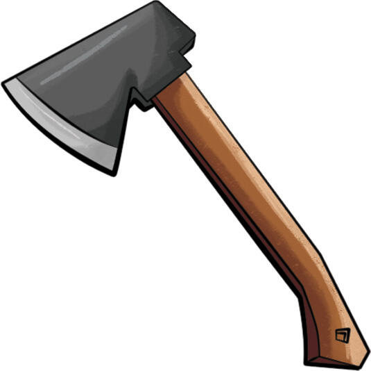 An axe is a tool with a handle and a big, sharp blade. It is used to chop wood.