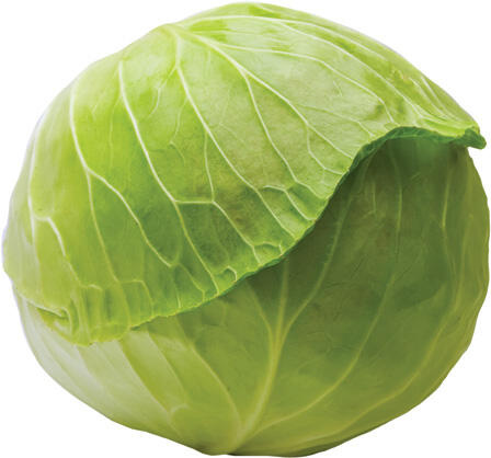 A cabbage is a round vegetable with green, white, or purple leaves.
