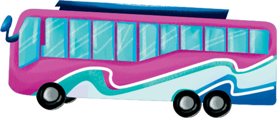 A bus is a large vehicle that carries lots of people.