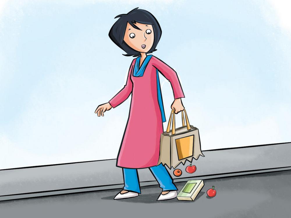 The bag burst and everything fell out of it.