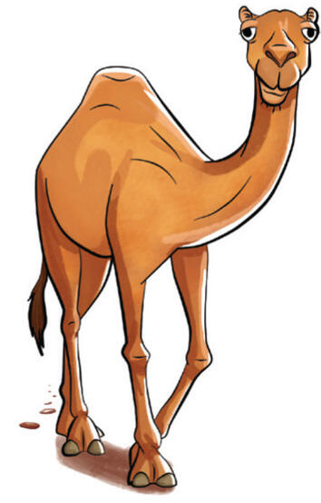 A camel is a large animal with one or two big lumps on its back. Camels live in hot, dry places and carry people and things.