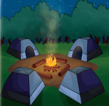 A camp is a place where people live in tents for a short time.