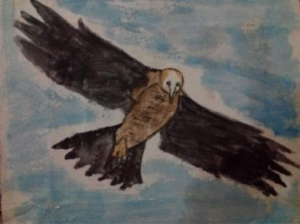 И вот однажды беркут заболел и лег на постель к охотнику и, опустив голову, закрыл глаза. Парень погладил птицу и проговорил: