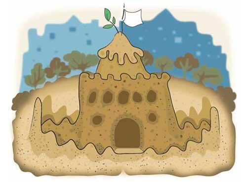 Враги шепчутся, а потом начинают кидаться горстями мокрого песка. Малыш Ви подставляет ладони, защищая крепость от обстрела, но два метких попадания и стены обрушиваются.