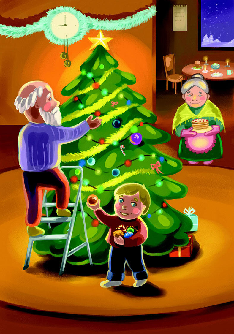 ja kultanauhoilla koristeltiin sen oksia.